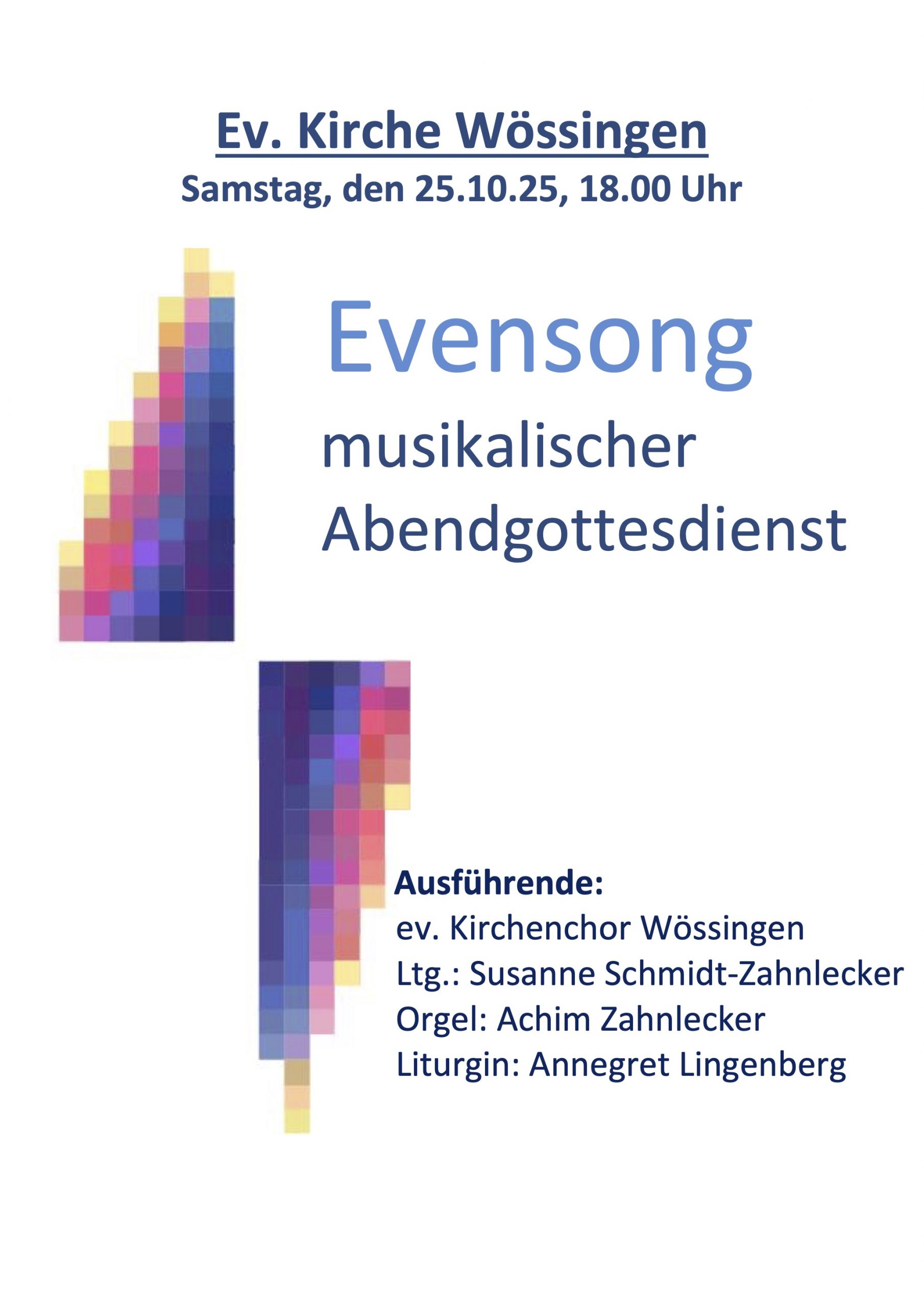 Evensong 6. Oktober 2025 Allgemeines Herzliche Einladung zum Evensong am Samstag, den 25.10.25 um 18 Uhr in der evangelischen Kirche Wössingen