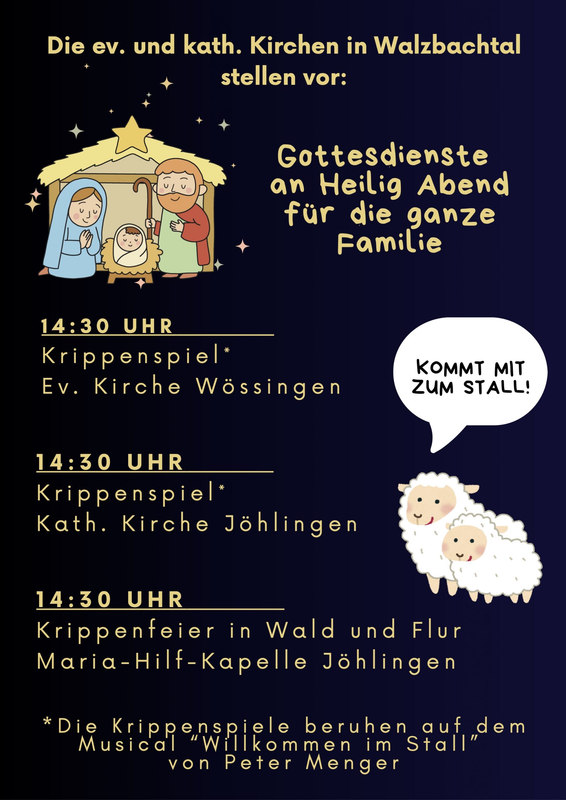 wir laden ein zu den Familiengottesdiensten am 24.12.2025 um 14:30 Uhr (siehe unser Plakat) und zum Musikalischen Gottesdienst mit unserem Posaunenchor und Pfarrer Söhn um 17:00 Uhr in der Weinbrennerkirche.