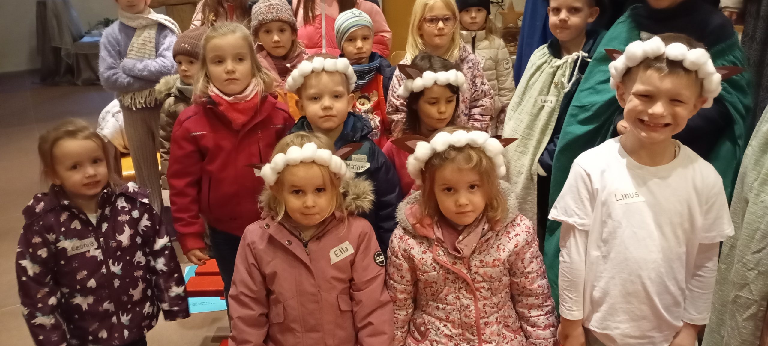 Als Jutta Dittus an Heiligabend bei „MACHT HOCH DIE TÜR“ die Eingangstür zur Kirche aufgemacht hat, da strömten sie herein, all die kleinen Schafe mit ihren Hirten, die Engel, Maria und ihre Mutter und natürlich Josef, nicht zu vergessen die beiden Wirte und der Kinderchor. Alle 33 Kinder, im Alter zwischen 3- 13 Jahren, waren in gespannter Erwartung auf das Krippenspiel, insbesondere diejenigen, die Text einstudiert hatten oder Solo singen durften.