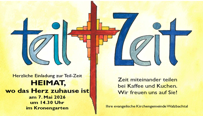 Am 7. Mai laden wir um 14.30 Uhr herzlich zur Teilzeit mit dem Thema: Heimat, wo das Herz zuhause ist, im Kronengarten ein. Zeit miteinander teilen bei Kaffee und Kuchen. Wir freuen uns auf Sie.